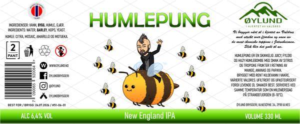 HUMLEPUNG ER EN SKIKKELIG JUICY, FYLDIG OG HAZY HUMLE-BOMBE MED SMAK AV SITRUS OG TROPISKE FRUKTER I RETNING AV MANGO, ANANAS OG PAPAYA. BRYGGET MED RENT KILDEVANN I VAKRE, VARIERTE VALDRES. UFILTRERT OG UPASTEURISERT FORDI LEVENDE ØL SMAKER BEST. SERVERES VED SAMME TEMPERATUR SOM EN MILDVÆRSDAG PÅ STRANDEFJORDEN (8-10*C).